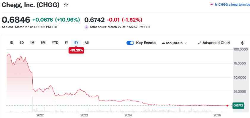Consider Chegg, a publicly traded provider of “homework help”. As LLM-based tools began to replicate its core offering, the company experienced a rapid deterioration in its subscriber base. Billions of dollars in market value were erased over two years. The company’s long-term viability is in doubt.