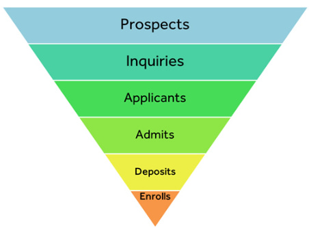 Prospects → Inquiries → Applicants → Admits → Deposits → Enrollments